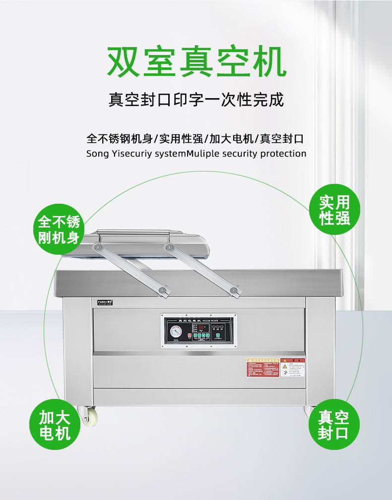 雙室真空包裝機(jī)憑借其高效、優(yōu)質(zhì)的包裝特性,廣泛適用于食品、電子、醫(yī)藥、日化以及五金機(jī)械等多個(gè)行業(yè)的產(chǎn)品包裝,以下是具體介紹: