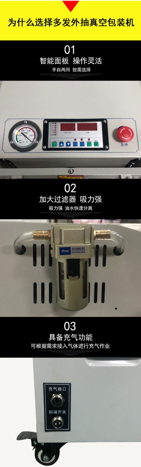 - 功能需求:根據實際生產需求,考慮是否需要一些附加功能,如充氣功能(用于在真空包裝后充入氮氣等惰性氣體,進一步保護產品)、計數功能、自動輸送功能等。這些功能可以提高生產效率和包裝的自動化程度。