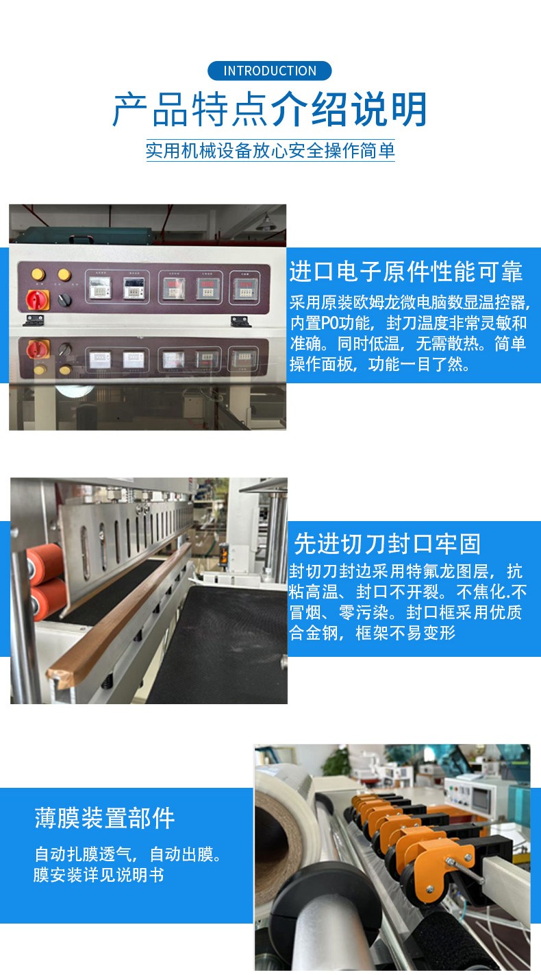 • 厚度:薄膜的厚度會影響邊封的溫度、壓力和時間等參數(shù)。較厚的薄膜可能需要更高的溫度和更大的壓力來進(jìn)行封口,而且在熱收縮過程中也可能需要更長的時間或者更高的溫度。因此,在選擇設(shè)備時要考慮其是否能夠滿足不同厚度薄膜的包裝要求。
