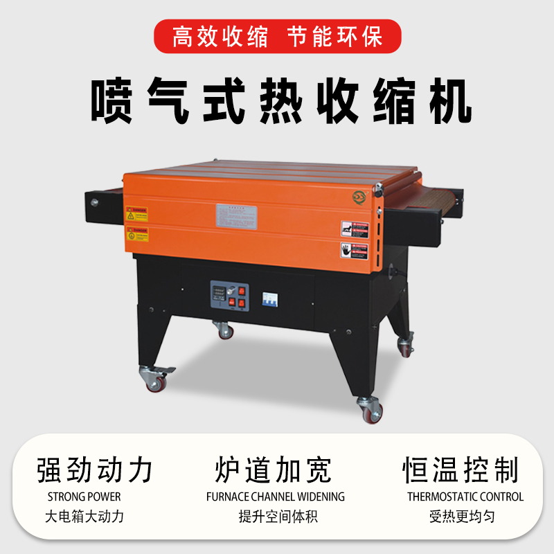 噴氣式熱收縮機是一種廣泛應用于包裝行業的設備。 一、工作原理 它主要是利用熱空氣循環技術來實現包裝收縮。機器通過加熱裝置將空氣加熱到一定溫度,然后利用噴氣裝置將熱空氣均勻地噴射到包裝材料上。包裝材料(通常是熱收縮薄膜)在熱空氣的作用下,受熱軟化,分子鏈開始運動,進而發生收縮,緊密地貼合在被包裝產品的表面。例如,在對一些盒裝飲料進行包裝時,熱收縮薄膜包裹在飲料盒外,噴氣式熱收縮機工作后,薄膜就會緊緊地收縮包裹住飲料盒,起到保護和美觀的作用。 二、結構組成 加熱系統 一般包括加熱管或加熱絲等部件。這些加熱元件
