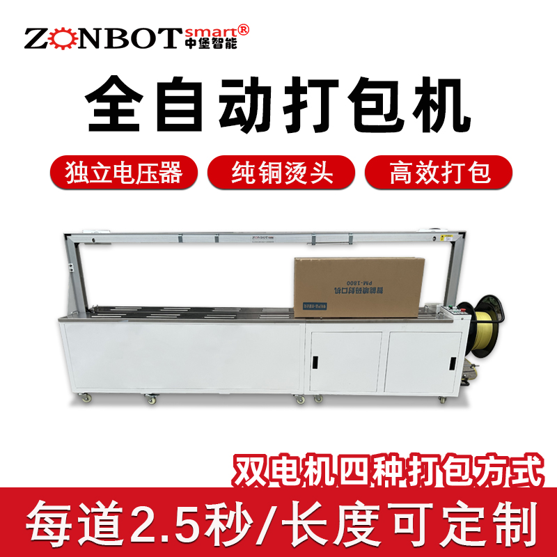 全自動打包機是一種高效、便捷的包裝設備,廣泛應用于各個行業(yè)的產(chǎn)品包裝環(huán)節(jié),以下從工作原理、結(jié)構(gòu)組成、性能特點、應用范圍等方面對其進行簡要概述: 工作原理 全自動打包機一般采用摩擦熔接的原理進行打包帶的連接。打包機通過電機驅(qū)動滾輪,使打包帶在滾輪的帶動下圍繞被包裝物進行纏繞。當打包帶的兩端重疊時,通過加熱元件對重疊部分進行加熱,使其表面熔化,然后在一定的壓力下冷卻固化,從而實現(xiàn)打包帶的連接,完成打包過程。 結(jié)構(gòu)組成 送帶機構(gòu):負責將打包帶從帶卷中抽出并輸送到打包位置,通常由電機、滾輪、皮帶等組成,能精確控制