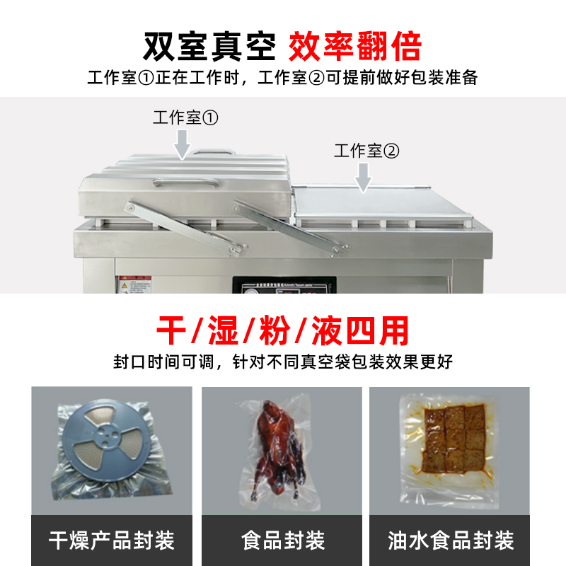 干濕兩用全自動雙室真空包裝機 真空封口鎖住新鮮商用食品包裝機