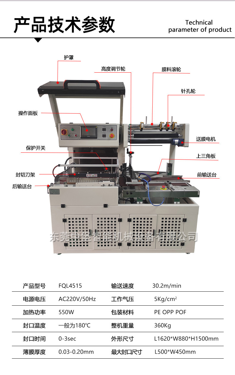 4515全自動高速封切機(jī)熱塑封pof塑膜套袋全自動封切收縮機(jī)