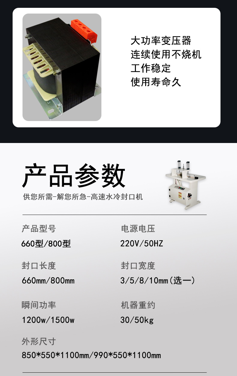 660GSJ水冷氣動(dòng)封口機(jī)防護(hù)服紙塑袋鋁箔PE袋眼睫毛封切封口機(jī)