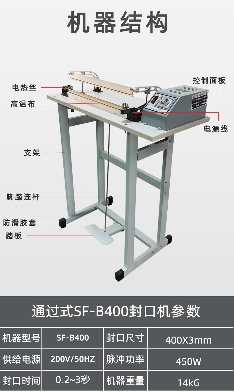 SF-B400工廠直銷腳踏式薄膜封口機(jī)通過式收縮膜封切機(jī)加熱快速封口機(jī)
