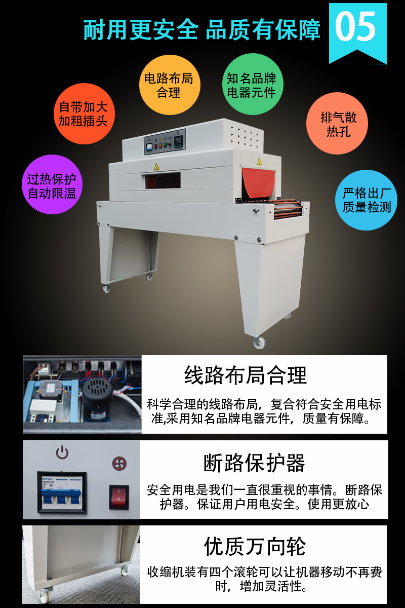 熱收縮機采用的進口材料,保證了產品的質量和性能,使您的產品在收縮包裝后,更耐用、更美觀,更具市場競爭力。