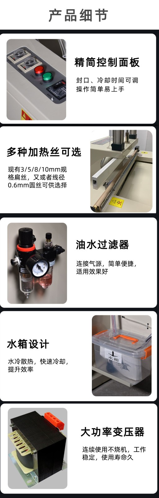 水冷封口機大多為氣動式,可用于日用品、紙球等工業品塑料膜的包裝封口。因此,該封口機也被稱為氣動式封口機。