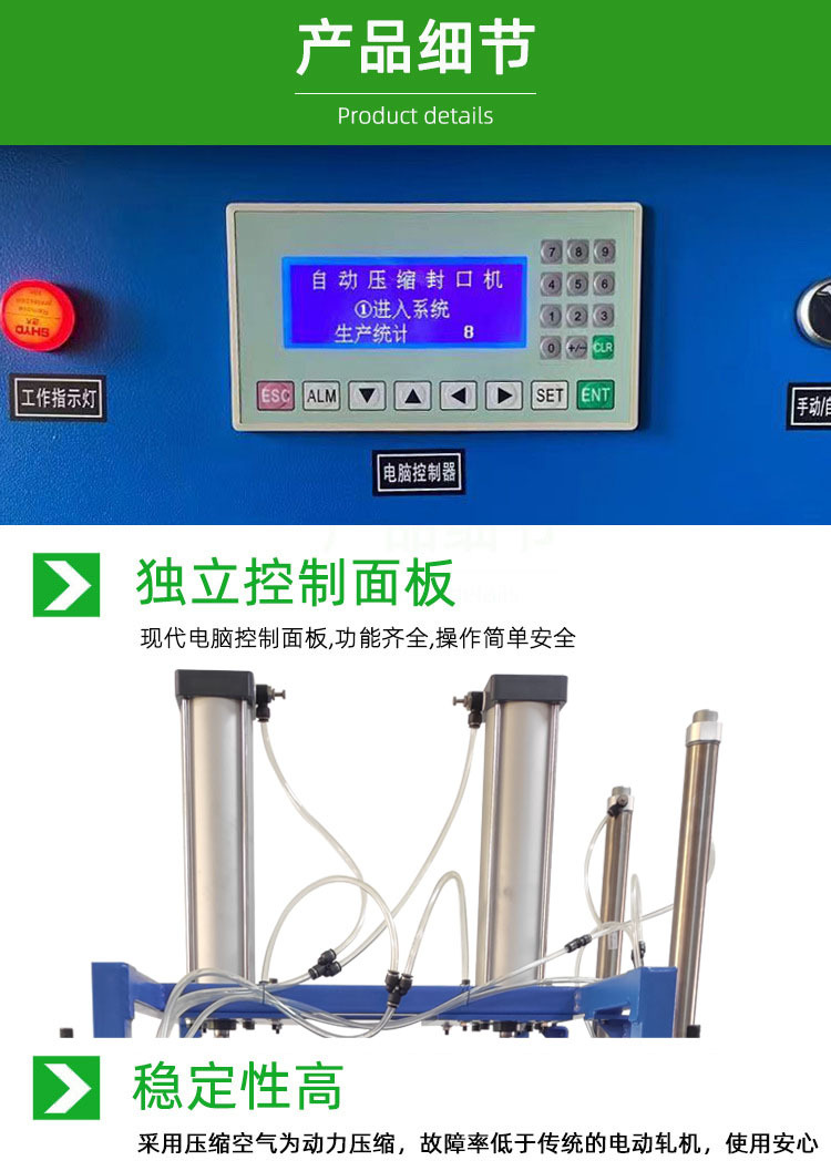 封口壓縮機是一種利用機械壓力將袋口封口成型的設(shè)備,主要由上下兩個封口頭和主體結(jié)構(gòu)組成。其技術(shù)特點是采用氣動或電動裝置控制封口頭的壓力和溫度,以達到快速封口、高效率、高精度和穩(wěn)定可靠的效果。