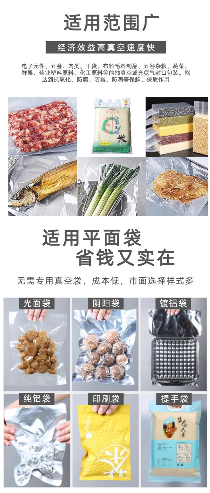 真空包裝是一種能夠自動抽出包裝袋內的空氣,達到預定真空度后完成封口工序的設備。它常被用于食品行,因為經過真空包裝以后,食品能夠抗氧化,從而達到長期保存的目的。此外,真空包裝機還可以再充入氮氣或其它混合氣體,然后完成封口工序。這種機器的起源可以追溯到20世紀40年代,隨著技術的發展,真空包裝機已經發展出多種類型,包括單室真空包裝外抽式真空包裝等,適用于不同的包裝需求和場景。