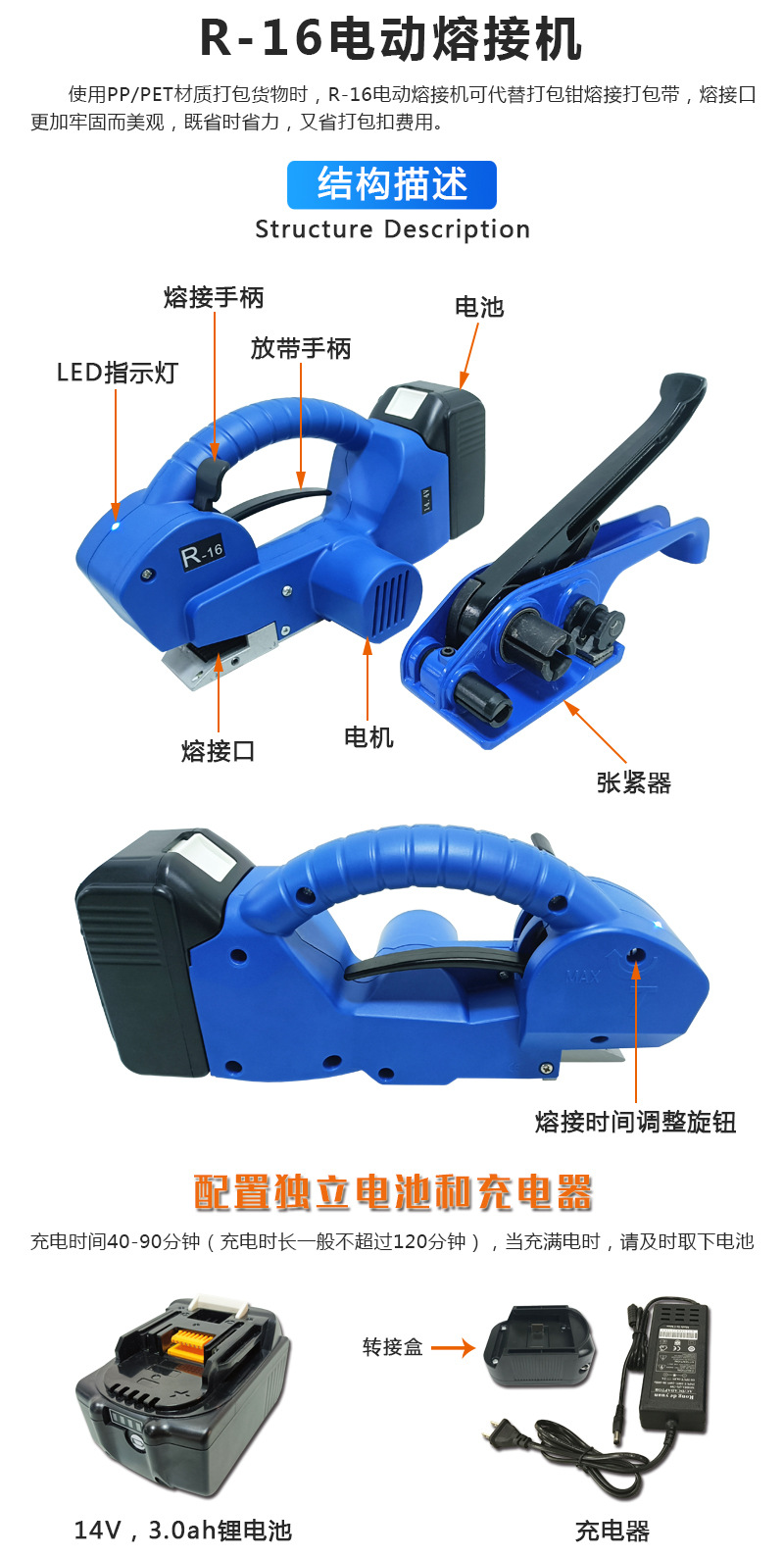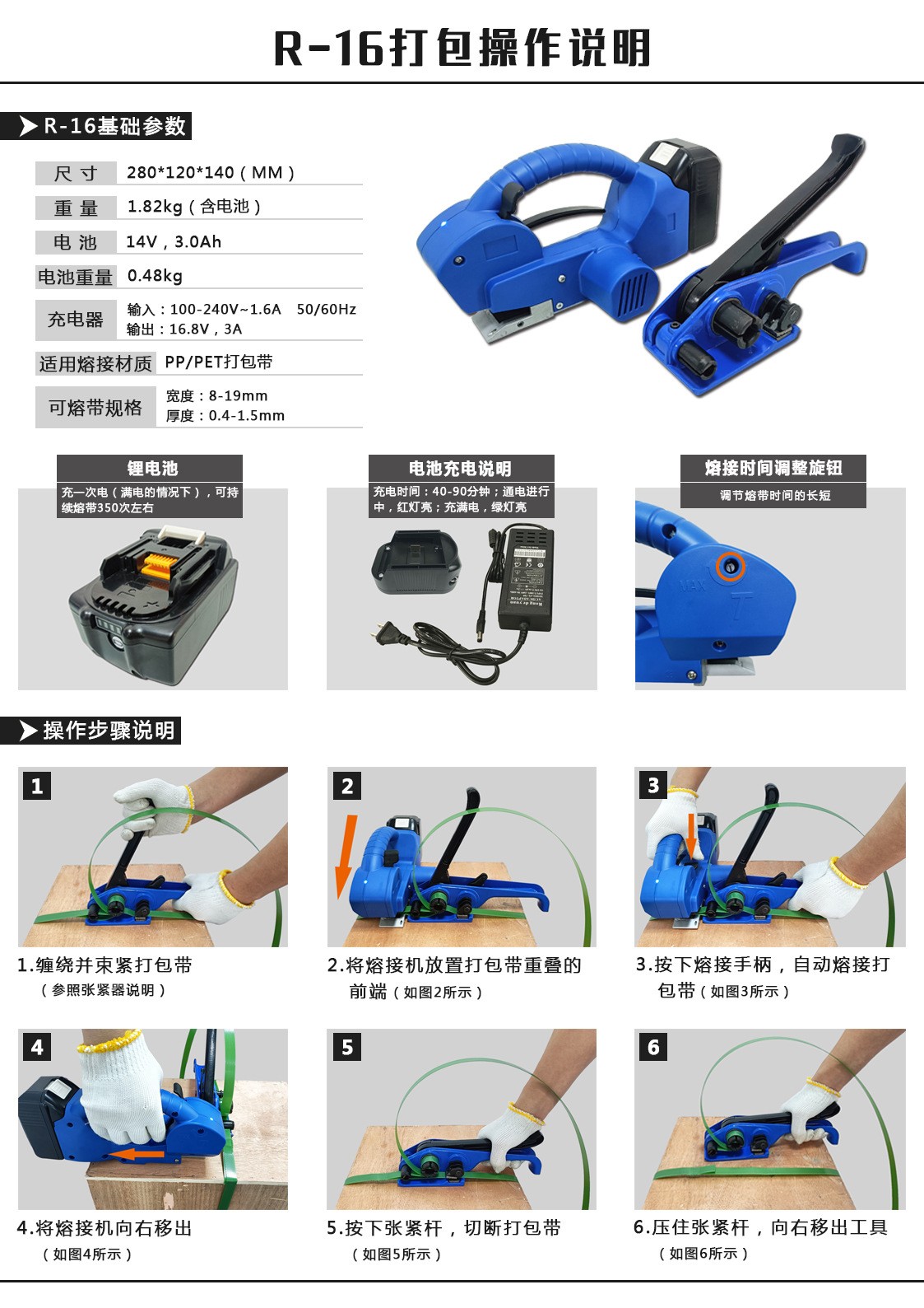 R-16半自動手搖式電動打包機 熱熔塑鋼帶半自動手搖式免扣拉緊器一體手提便攜