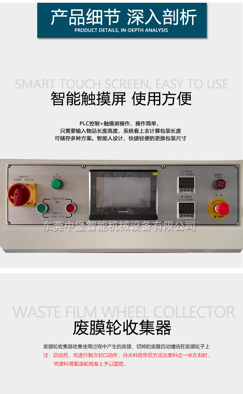 封切機全自動無人化操作的包裝機,廣泛用于批量生產包裝的流水作業,工作效率高,自動送膜打孔,自動套膜封切,自動卷取廢料;只需手動調節導膜系統以及手動調節進料輸送平臺,適用不同寬度及高度的產品。