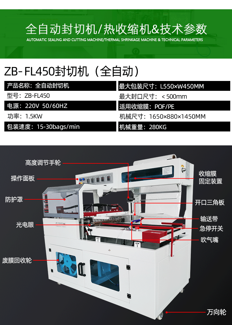封切機是全自動無人化操作的包裝機,廣泛用于批量生產包裝的流水作業,工作效率高,自動送膜打孔,自動套膜封切,自動卷取廢料;只需手動調節導膜系統以及手動調節進料輸送平臺,適用不同寬度及高度的產品。