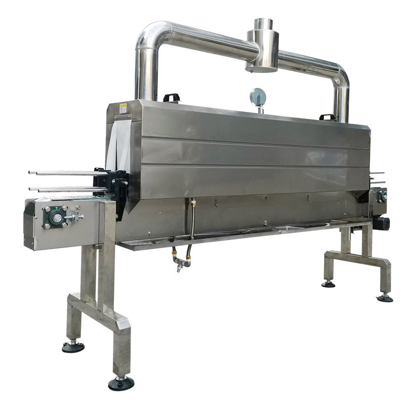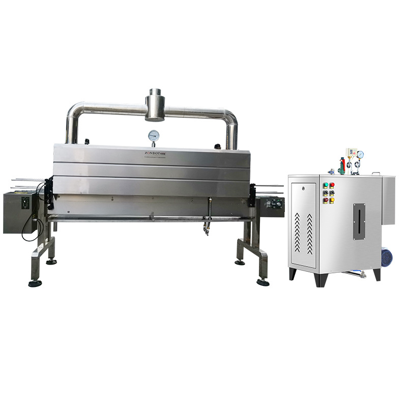 利用蒸汽獨有的恒溫而且溫度擴散均勻的特性來工作,以達到普通電熱紅外加熱收縮機不可比擬的效果。設備采用加熱器加熱水而產生蒸汽,不需要另外配備蒸汽鍋爐。主機有主副2個加熱器,可以根據不同的生產速度來調節設備功率的大小,輸送帶采用無級調速,輸送速度可以任意調節。廣泛應用于大桶或小瓶裝礦泉水、純凈水;汽水和茶飲料等食品飲料行業,以及化妝品、洗發水和五金電子等需要收縮膜包裝的場合使用。熱收縮機采用收縮薄膜包裹在產品或包裝件外面,經過加熱,使收縮薄膜收縮裹緊產品或包裝件,充分顯示物品的外觀,提高產品的展銷性,增加美觀及價值感